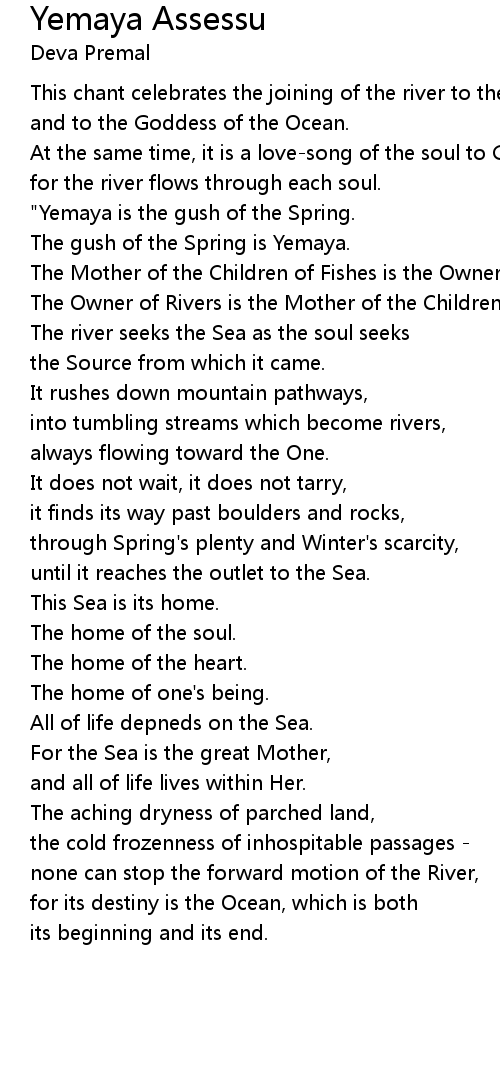 "Yemaya is the gush of the Spring. |
