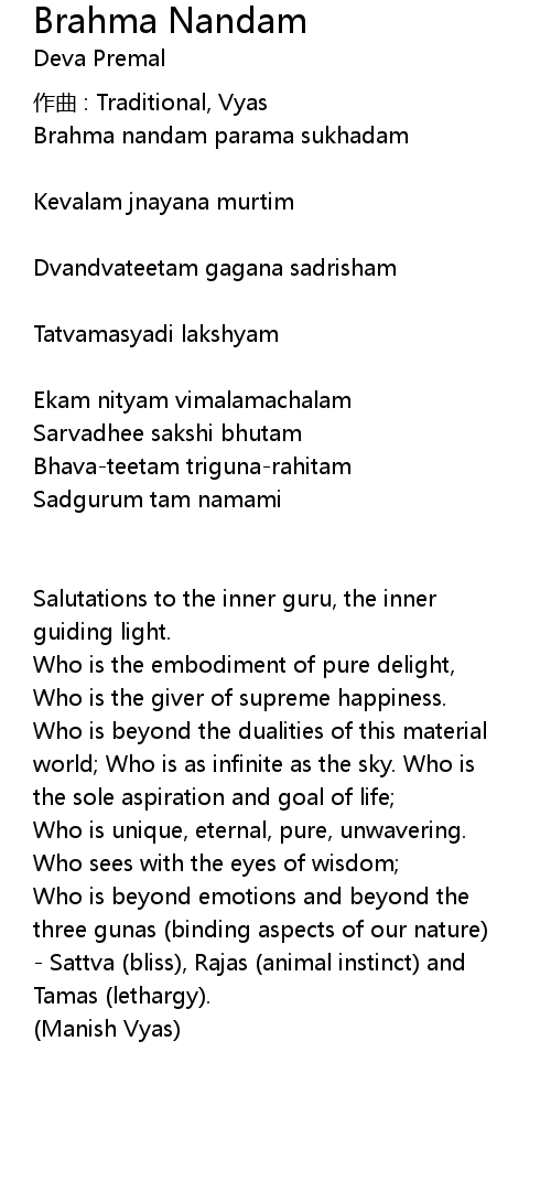 | Brahma nandam parama sukhadam | |