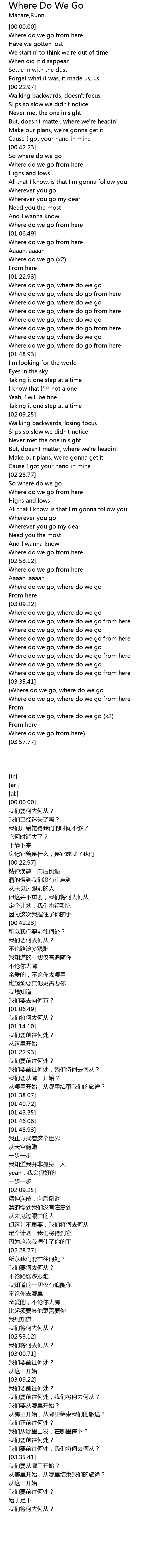 | [03:19.37] | Where do we go, where do we go |
