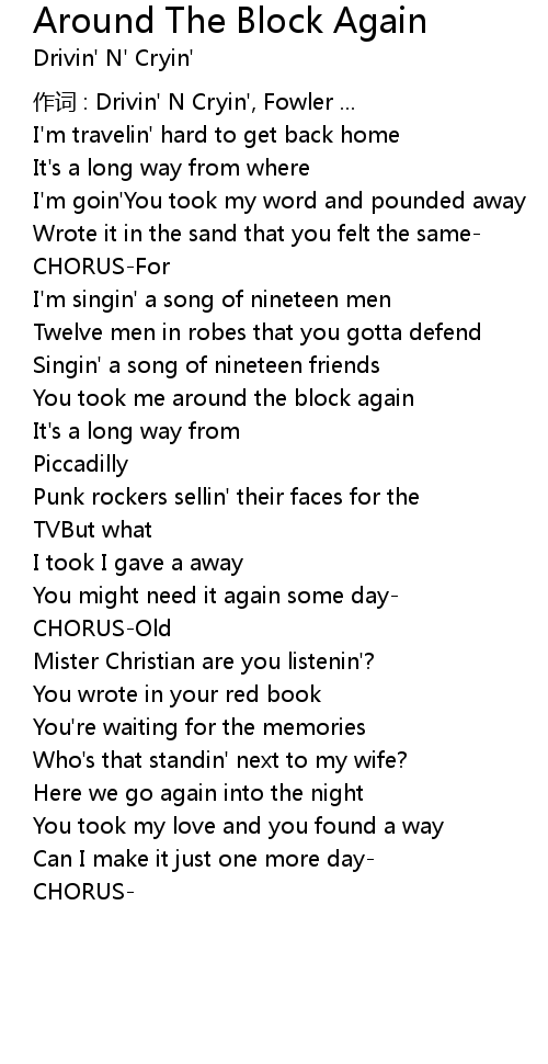 | Song | Around The Block Again |