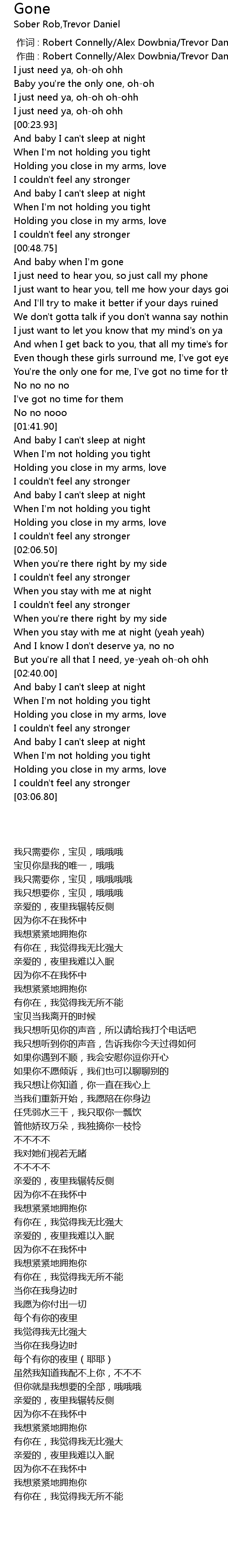 | [00:00.000] | 作词 : Robert Connelly/Alex Dowbnia/Trevor Daniel |