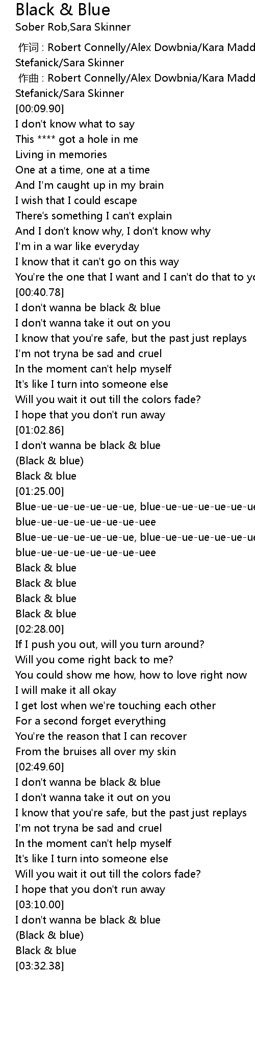 | [02:23.98] | Black & blue |