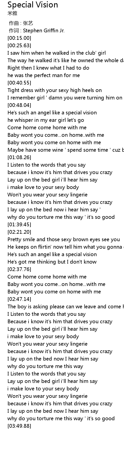 | [03:32.50] | Won't you wear your sexy lingerie |