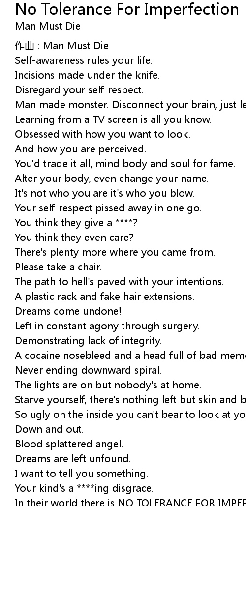 | In their world there is NO TOLERANCE FOR IMPERFECTION. |