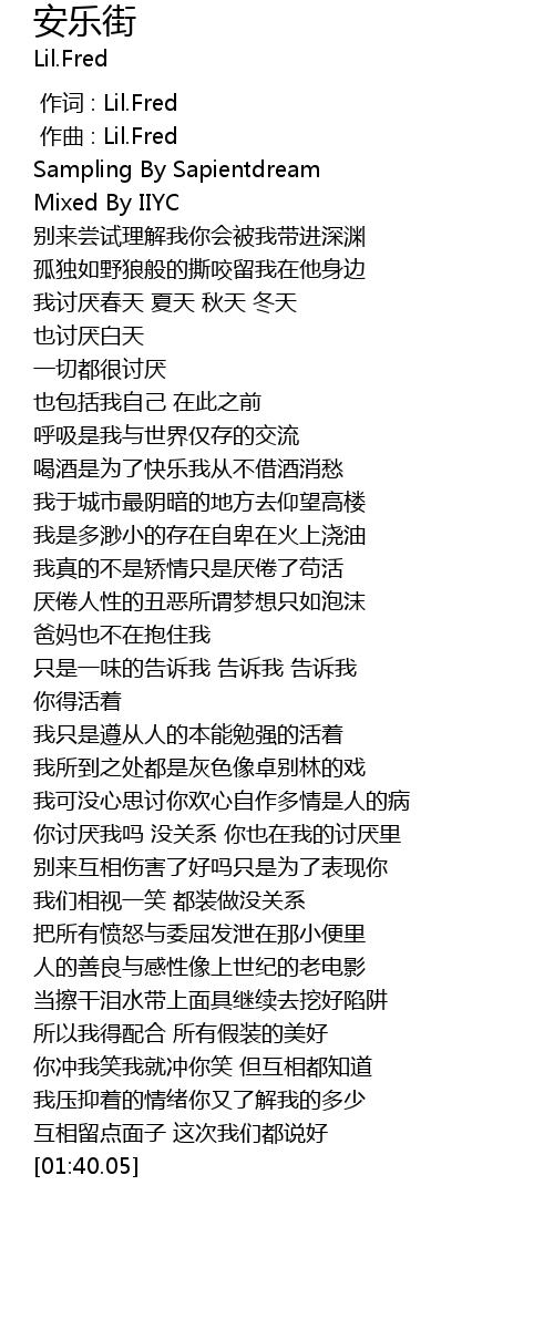 | [00:00.000] | 作词 : Lil.Fred |