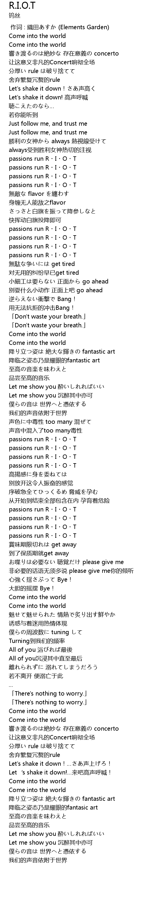 | [04:15.685] | Let's shake it down!…さあ声上げろ! |