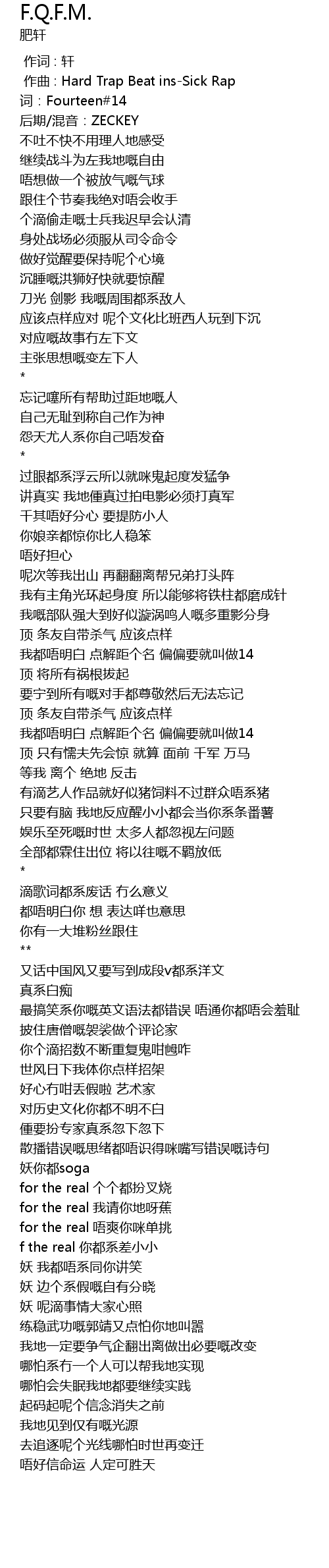 | [01:34.610] | 我都唔明白 点解距个名 偏偏要就叫做14 |