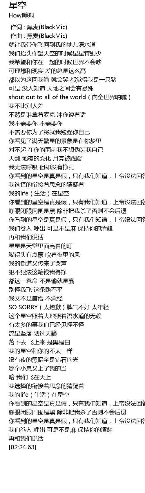 | [00:00.000] | 作词 : 黑麦(BlackMic) |