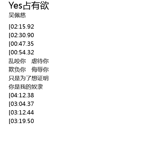 | [04:20.52][03:04.37][01:52.69] | 占有欲太强 YES YES |