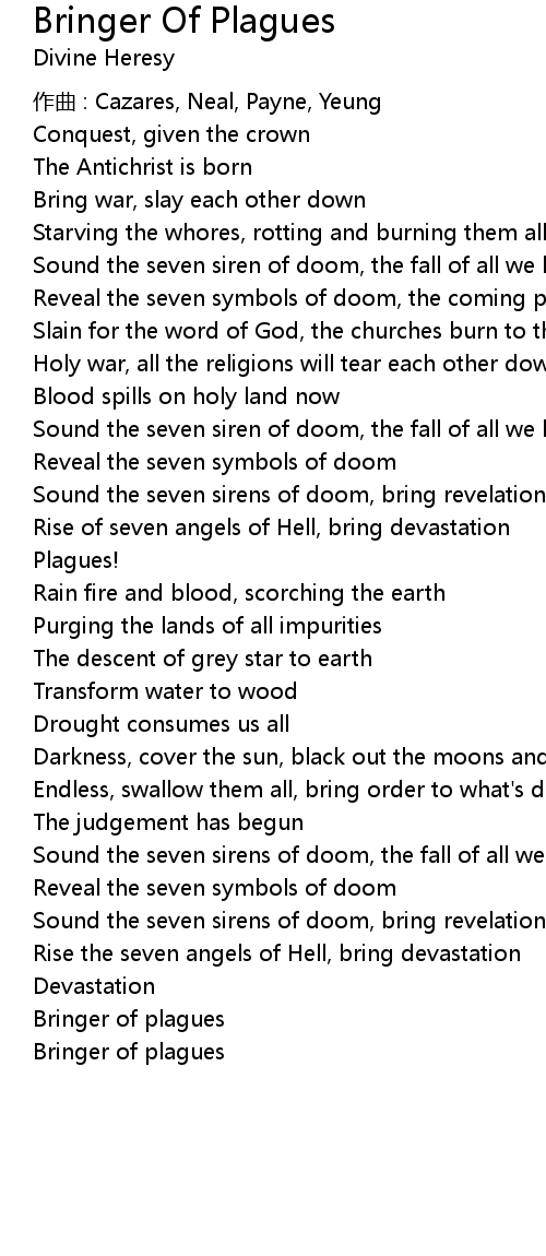 | Song | Bringer Of Plagues |