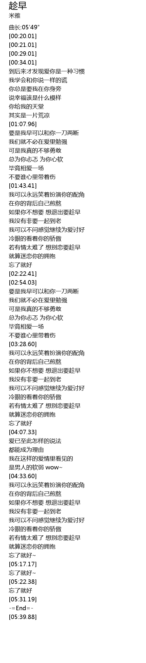 | [05:00.82] | 若有情太难了 想别恋要趁早 |