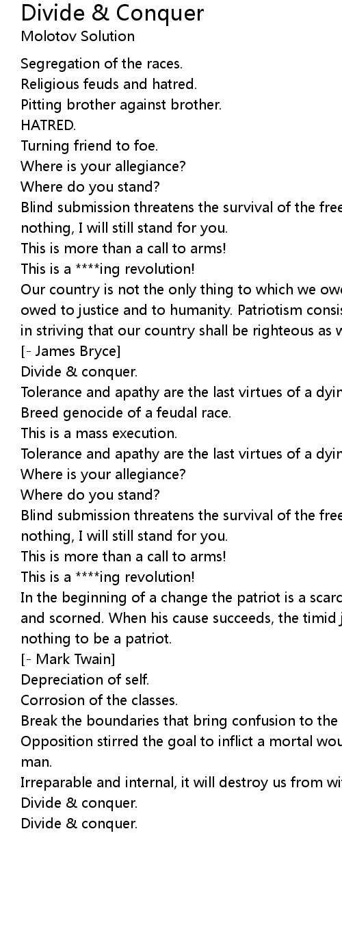 Blind submission threatens the survival of the free man... and if you stand for nothing, I will still stand for you. |