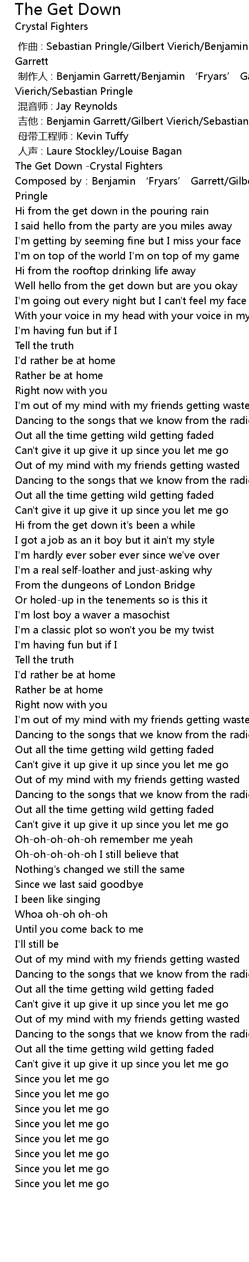 | [00:00.430] | The Get Down -Crystal Fighters |