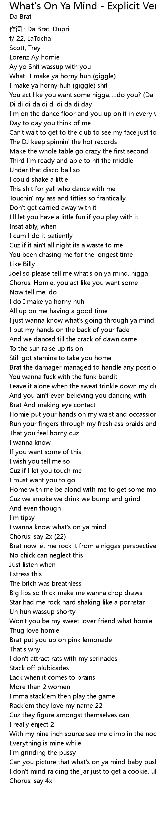 | Song | What's On Ya Mind - Explicit Version |