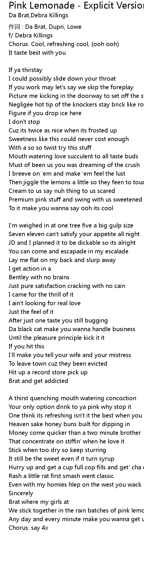 | Add that sugar baby in my pink lemonade Da Brat | |