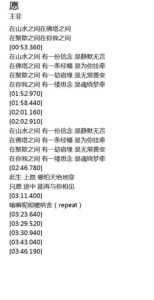 | [03:15.900] | 嗡嘛呢呗嚒哄舍(repeat) |