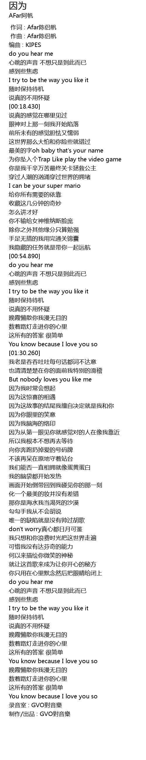 | [00:00.000] | 作词 : Afar陈侣帆 |