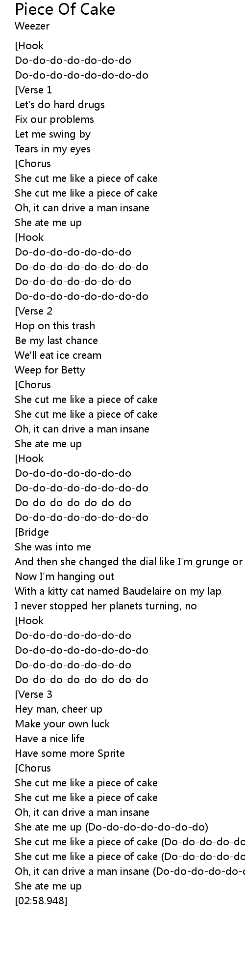 She cut me like a piece of cake (Do-do-do-do-do-do-do-do) |