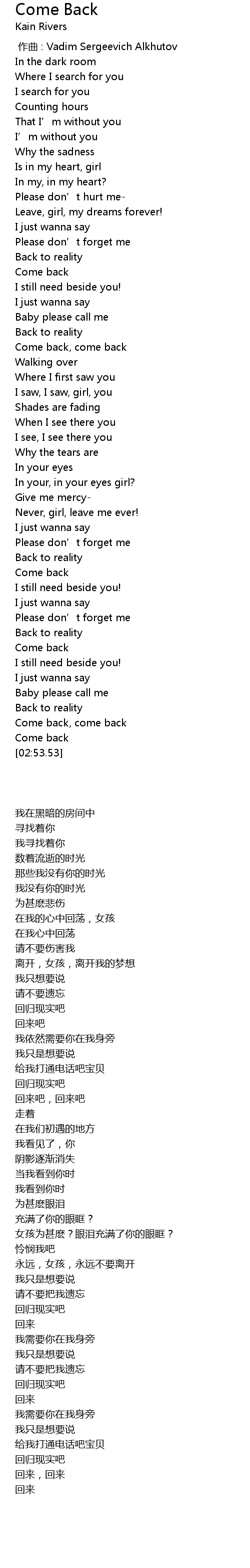 | [02:00.17] | Come back |