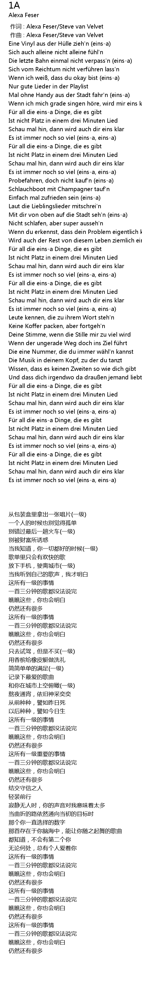 | [00:45.278] | Es ist immer noch so viel einsa, einsa |