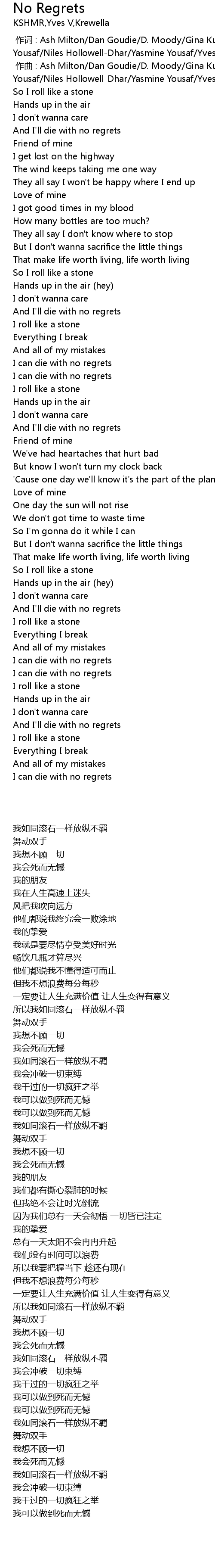 | [00:50.70] | And I' ll die with no regrets |