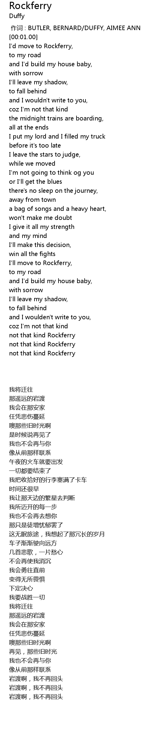 | [00:00.00] | 作词 : BUTLER, BERNARD/DUFFY, AIMEE ANN |