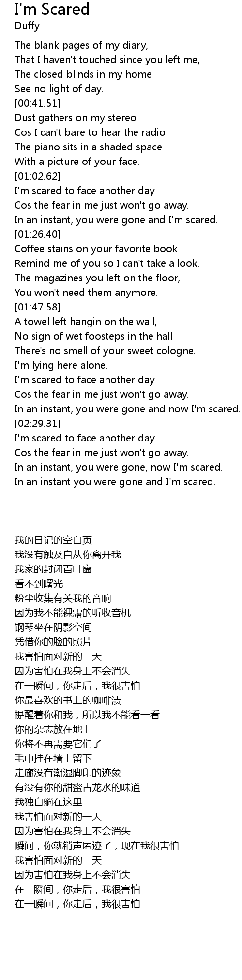 | [02:52.91] | In an instant you were gone and I'm scared. |