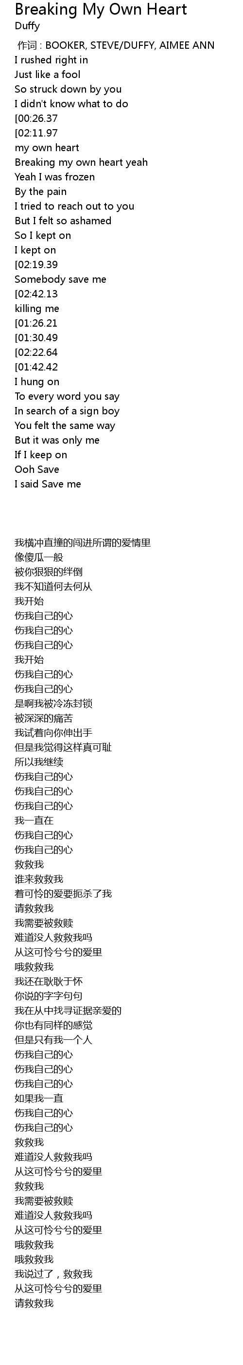 | [00:00.00] | zuò cí : BOOKER, STEVE DUFFY, AIMEE ANN |