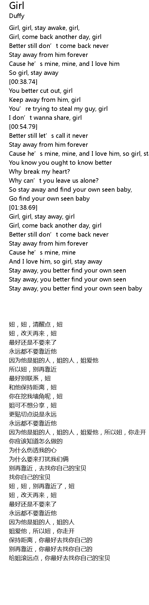 | [01:40.13] | Girl, girl, stay away, girl |
