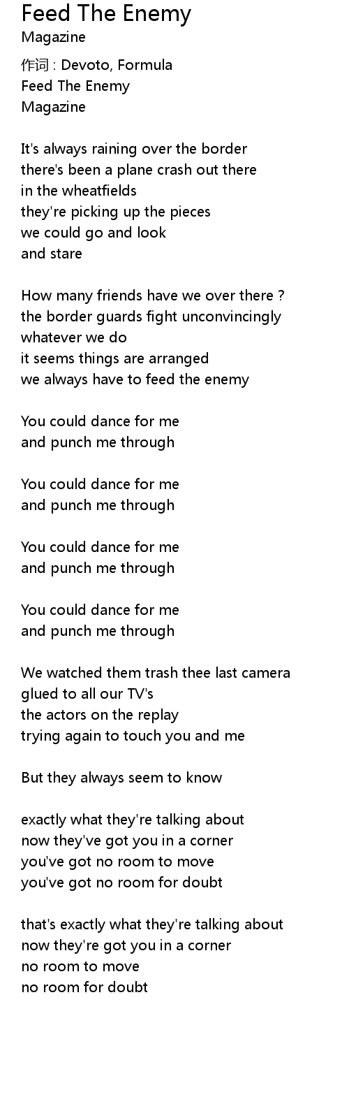 | Song | Feed The Enemy |