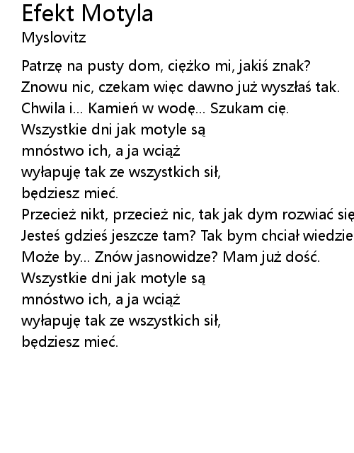 | Song | Efekt Motyla |