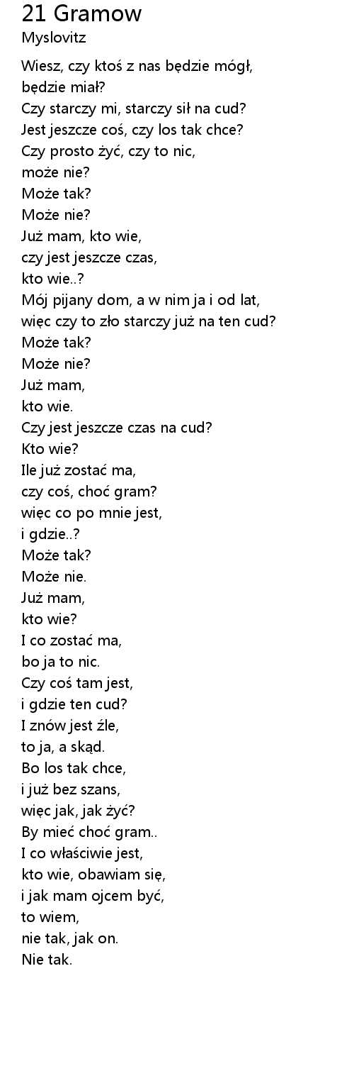 | [01:43.35] | wi c czy to z o starczy ju na ten cud? |