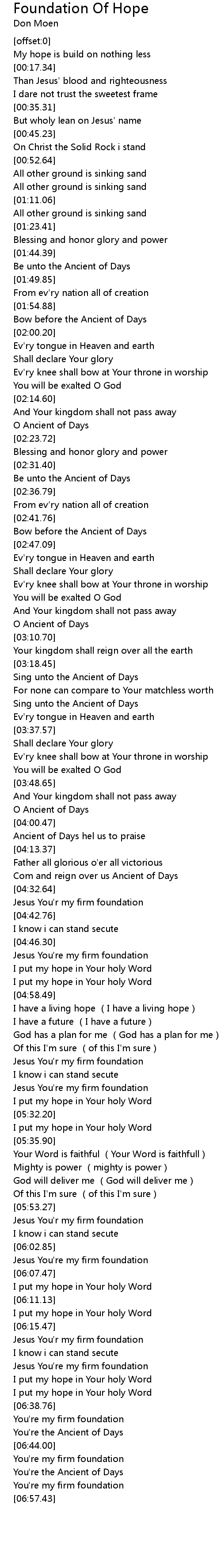 | [00:45.82] | On Christ the Solid Rock i stand |