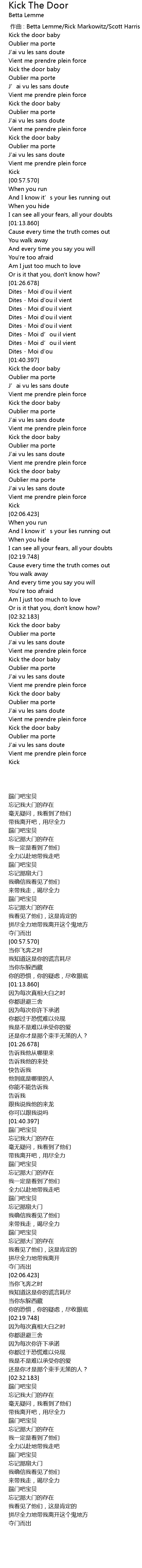 | [00:00.000] | zuo qu : Betta Lemme Rick Markowitz Scott Harris |