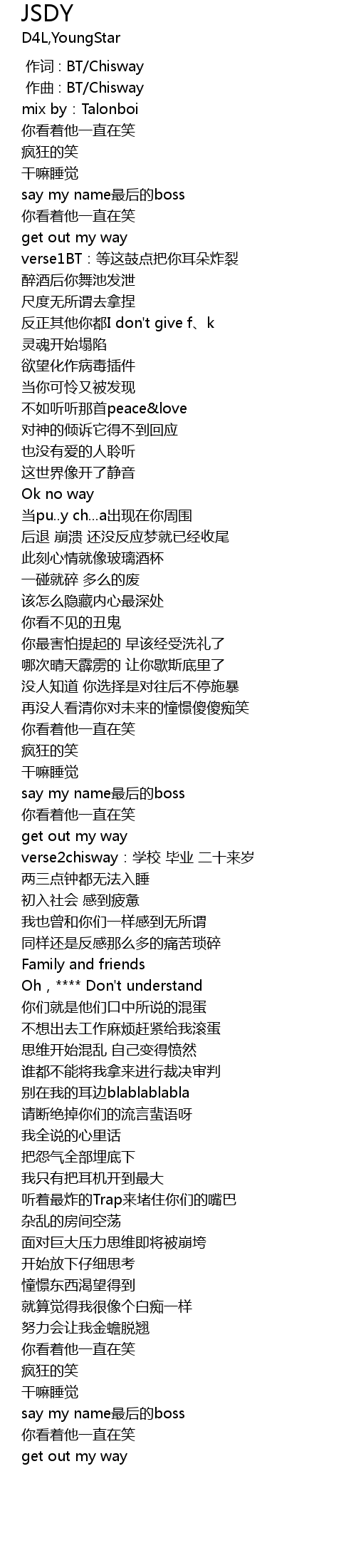 | [01:03.68] | fan zheng qi ta ni dou I don' t give f k |