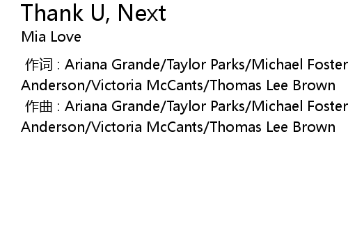 | [00:00.000] | 作词 : Ariana Grande/Taylor Parks/Michael Foster/Charles Anderson/Victoria McCants/Thomas Lee Brown |