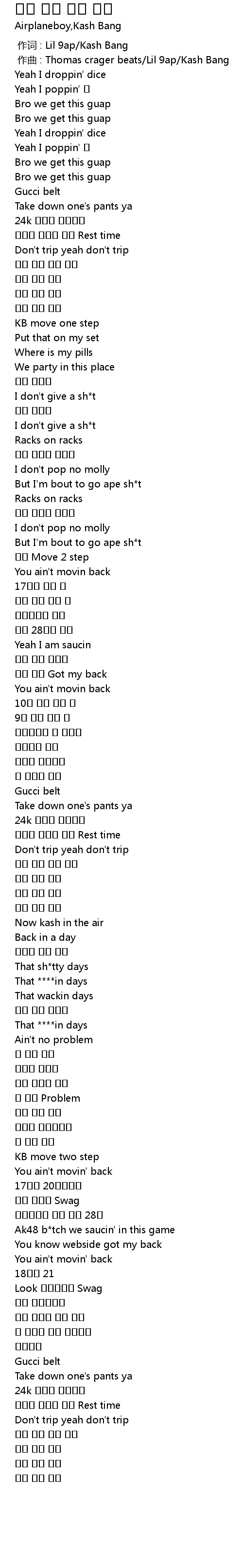 | [00:01.000] | 作曲 : Thomas crager beats/Lil 9ap/Kash Bang |