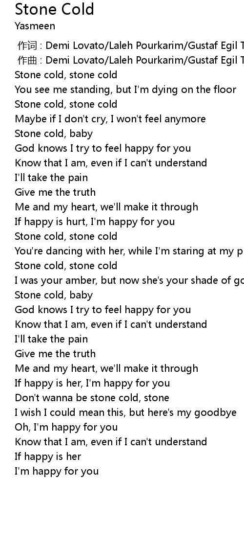 | [02:25.81] | Don't wanna be stone cold, stone |