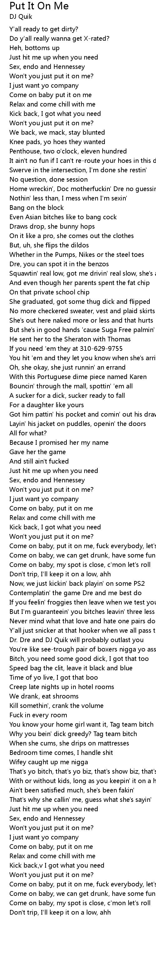 Squawtin' real low, got me drivin' real slow, she's a real ho |