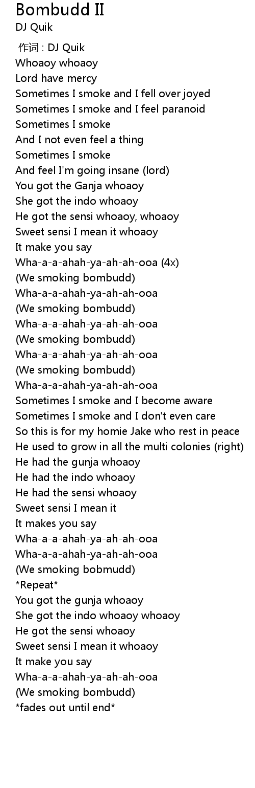 | [00:15.002] | Sometimes I smoke and I fell over joyed |