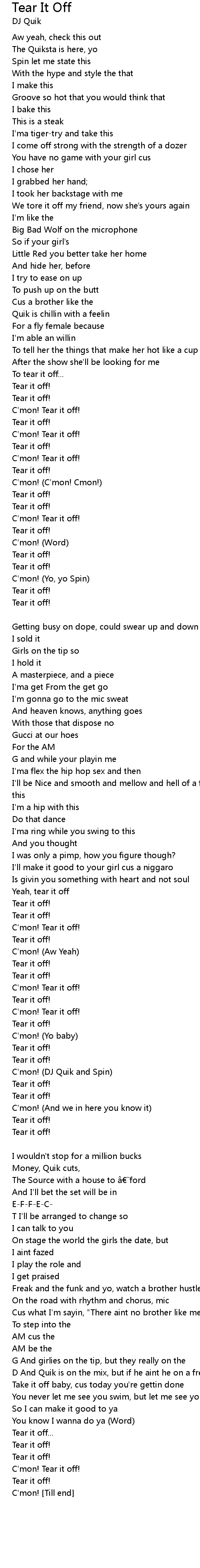 | Yeah, tear it off | |