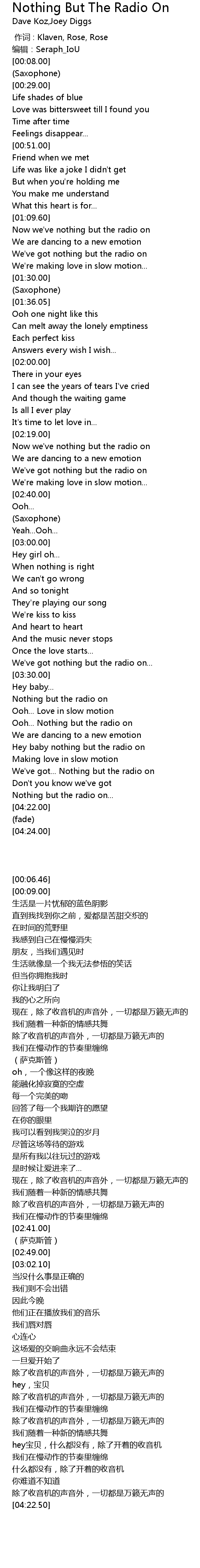 | [03:36.00] | Nothing but the radio on |