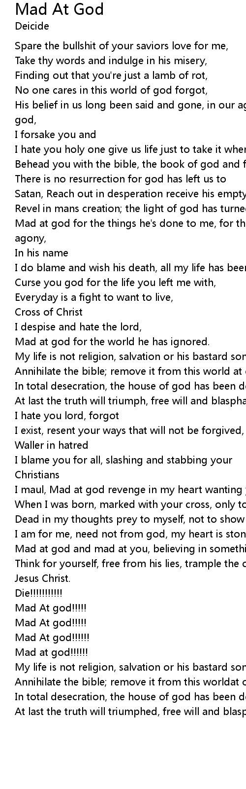 I maul, Mad at god revenge in my heart wanting you dead will never depart, |