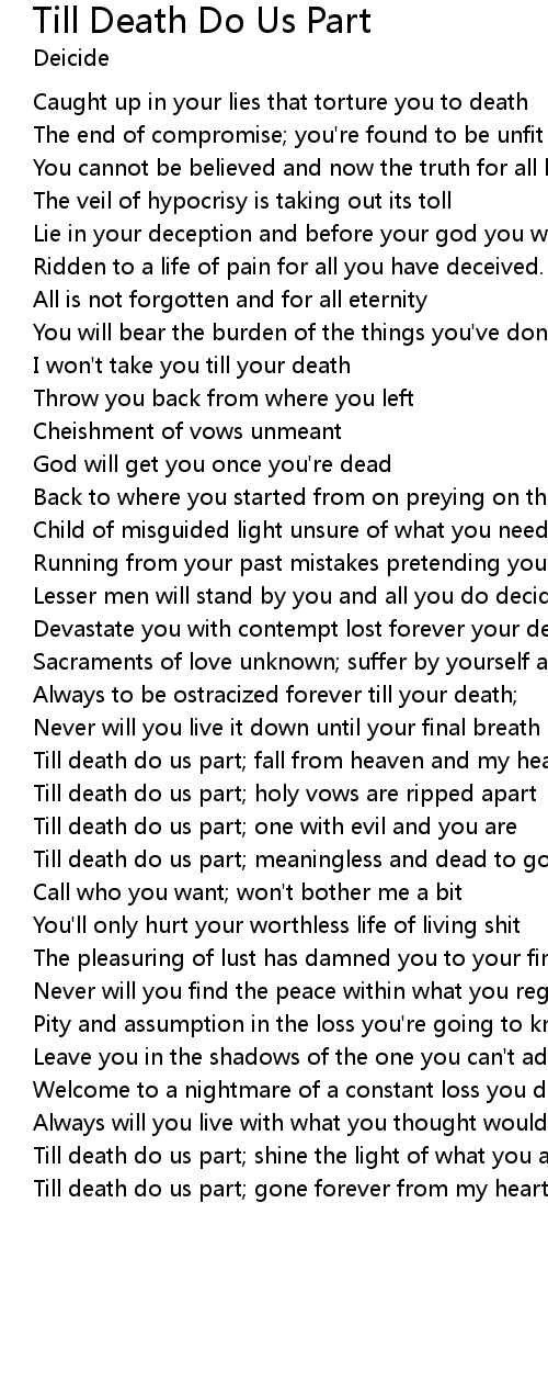 Till death do us part; gone forever from my heart |