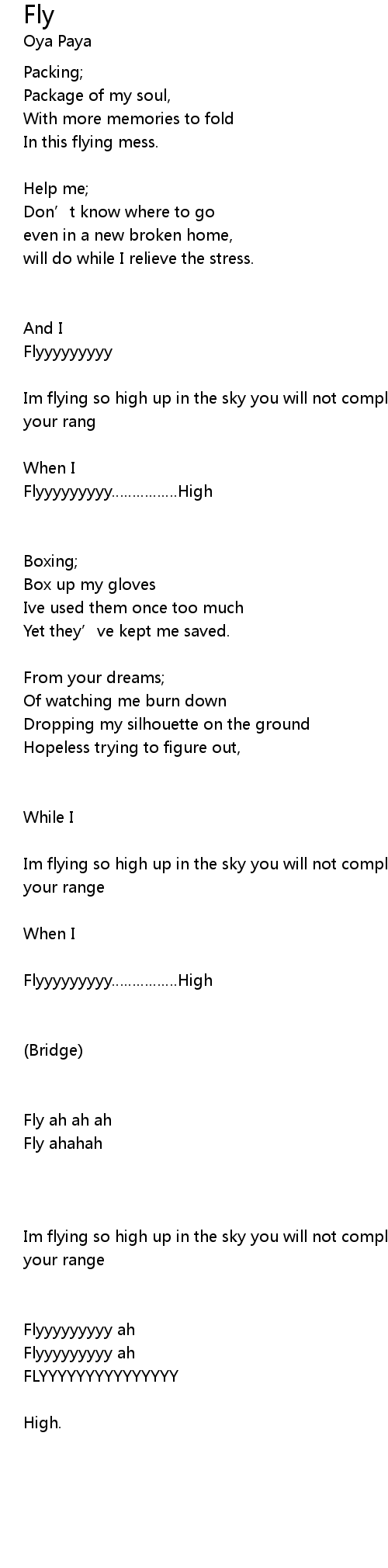 | Im flying so high up in the sky you will not comply because im soaring out of your rang | |
