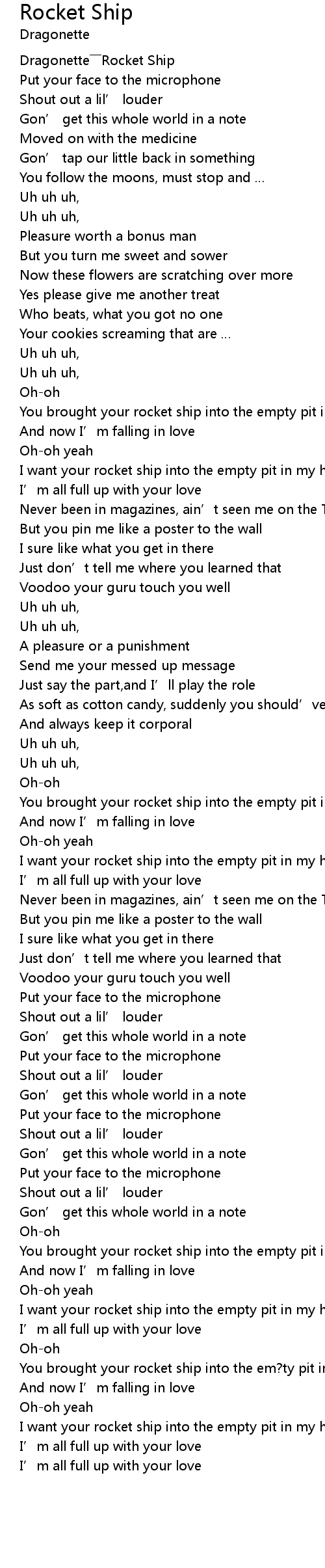 | [03:16.81] | I want your rocket ship into the empty pit in my heart |
