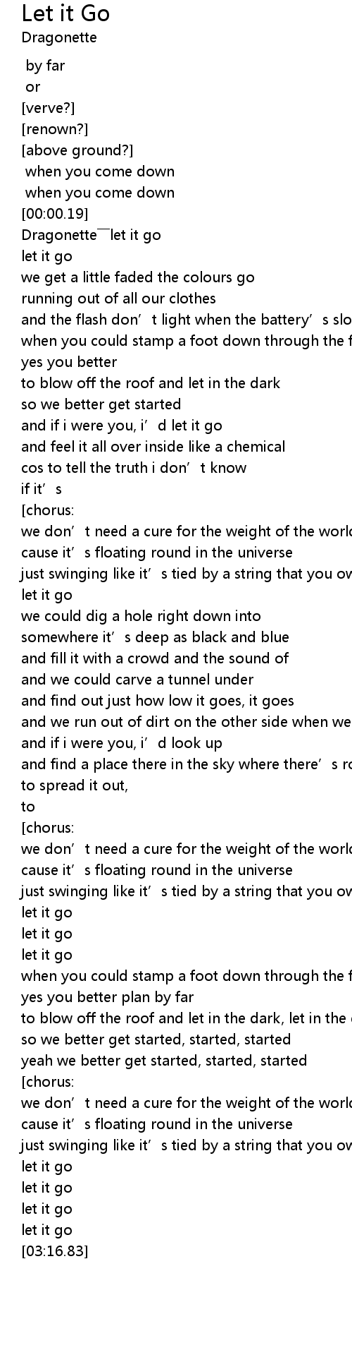 | [02:47.88] | we don' t need a cure for the weight of the world |