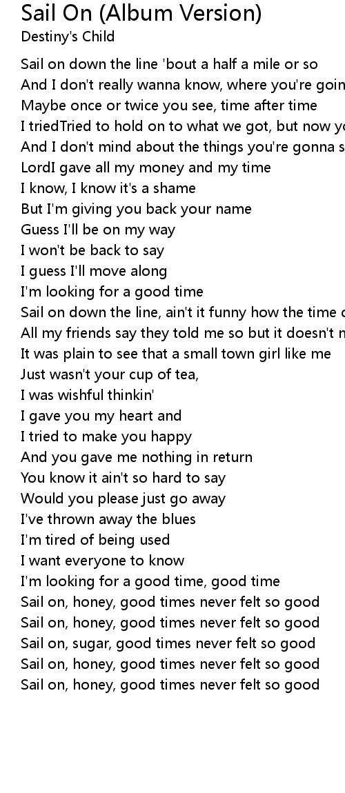 Sail on, honey, good times never felt so good |