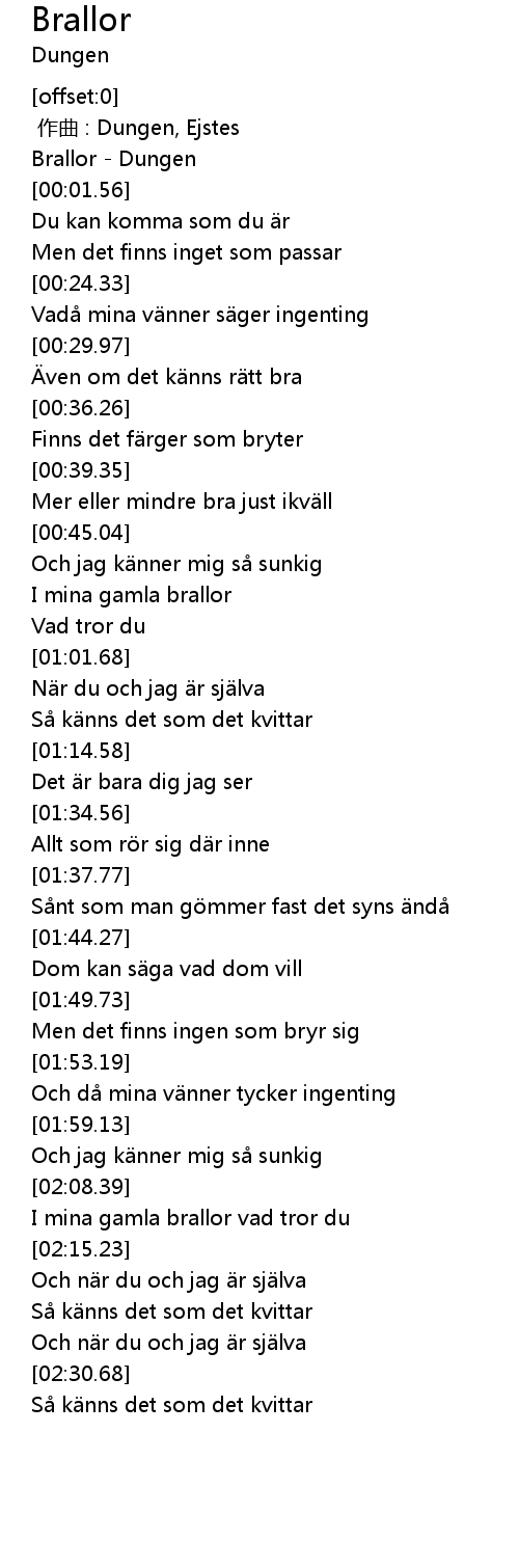 | [00:00.66] | Brallor - Dungen |