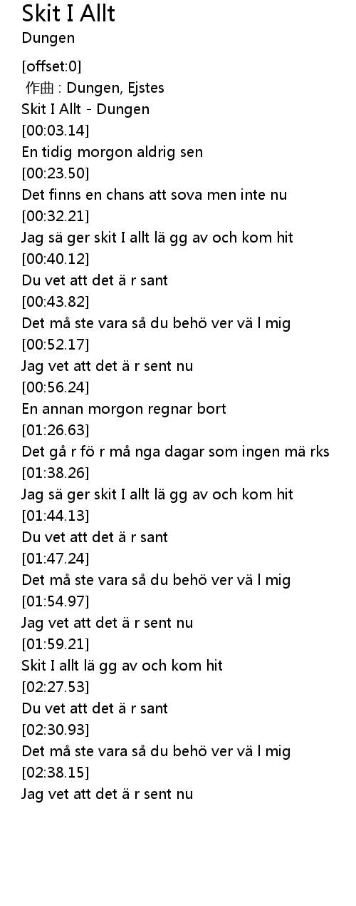 | [00:00.00] | 作曲 : Dungen, Ejstes |